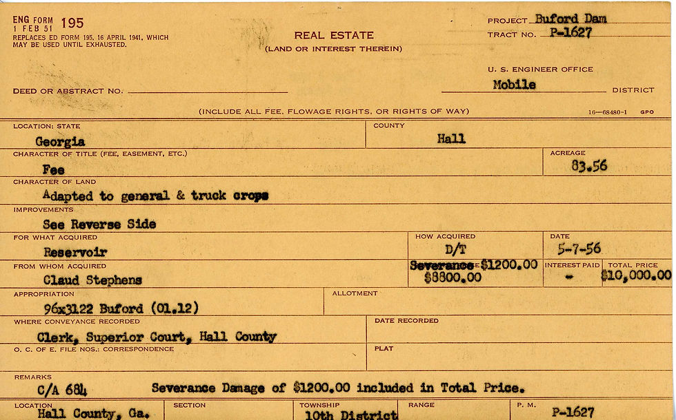 Welcome to Lake Lanier’s Reservoir Land & Property Archival Program. This tool will allow you to locate information on land and other property the government purchased for Lake Sidney Lanier. You can search for property information by the owner’s full name, the owner’s last name, the tract number, and county the property was located in.