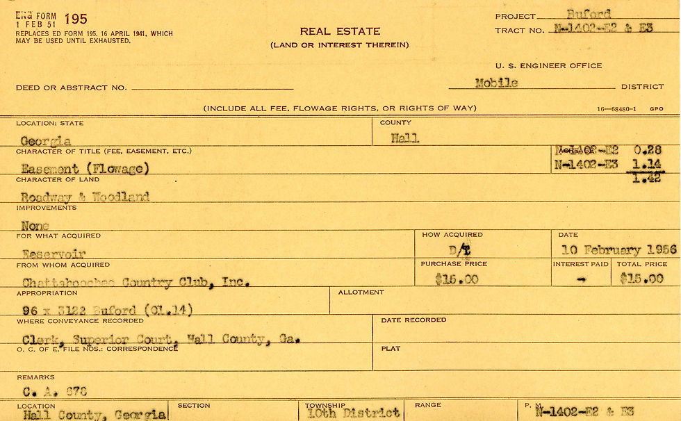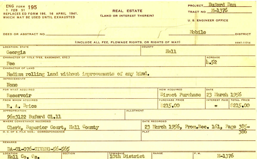Welcome to Lake Lanier’s Reservoir Land & Property Archival Program. This tool will allow you to locate information on land and other property the government purchased for Lake Sidney Lanier. You can search for property information by the owner’s full name, the owner’s last name, the tract number, and county the property was located in.