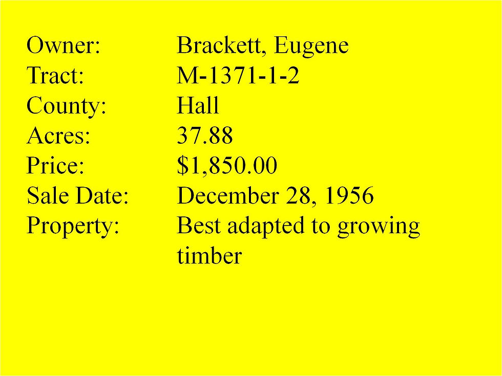 An abridged collection of data is provided for each tract of land. Data sheets detailing the owner’s name, tract number of the property, the county it was located in, the acreage purchased, the price paid by the government for the property and a description of what the property was used for is provided for each tract. Government promissory deed records are provided for most of the tracts. Some contain photographs of improvements made on the property to help determine the fair market value of property.