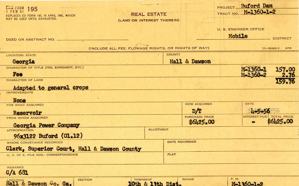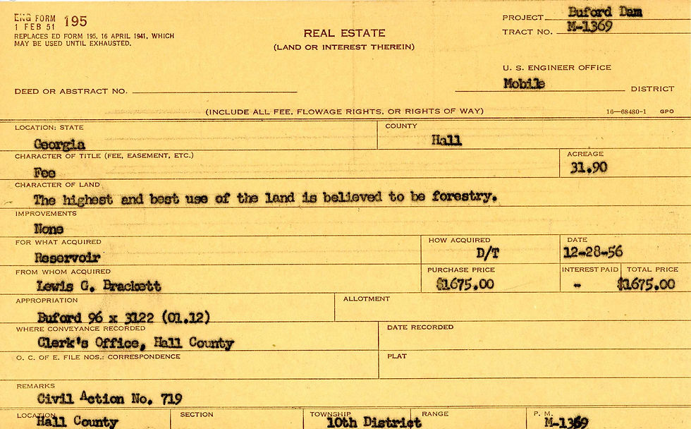 Welcome to Lake Lanier’s Reservoir Land & Property Archival Program. This tool will allow you to locate information on land and other property the government purchased for Lake Sidney Lanier. You can search for property information by the owner’s full name, the owner’s last name, the tract number, and county the property was located in.