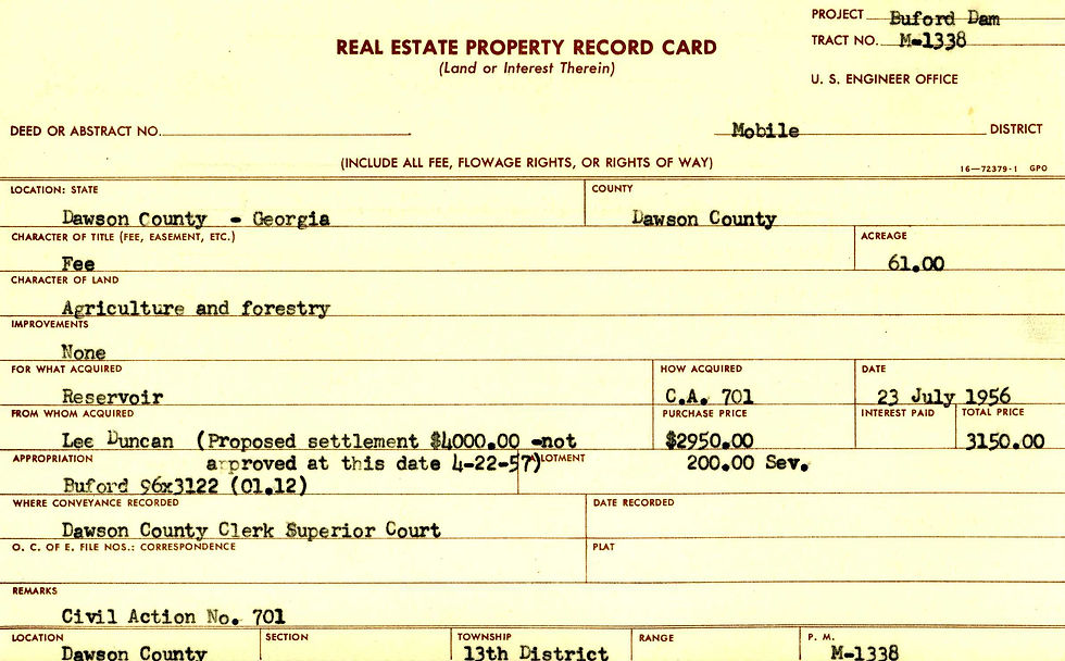 Welcome to Lake Lanier’s Reservoir Land & Property Archival Program. This tool will allow you to locate information on land and other property the government purchased for Lake Sidney Lanier. You can search for property information by the owner’s full name, the owner’s last name, the tract number, and county the property was located in.