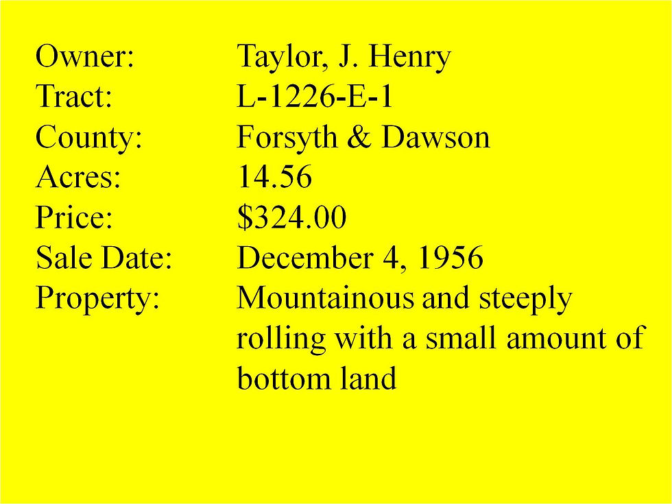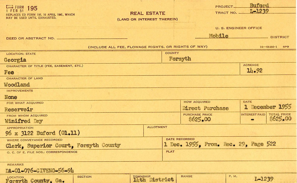 Welcome to Lake Lanier’s Reservoir Land & Property Archival Program. This tool will allow you to locate information on land and other property the government purchased for Lake Sidney Lanier. You can search for property information by the owner’s full name, the owner’s last name, the tract number, and county the property was located in.