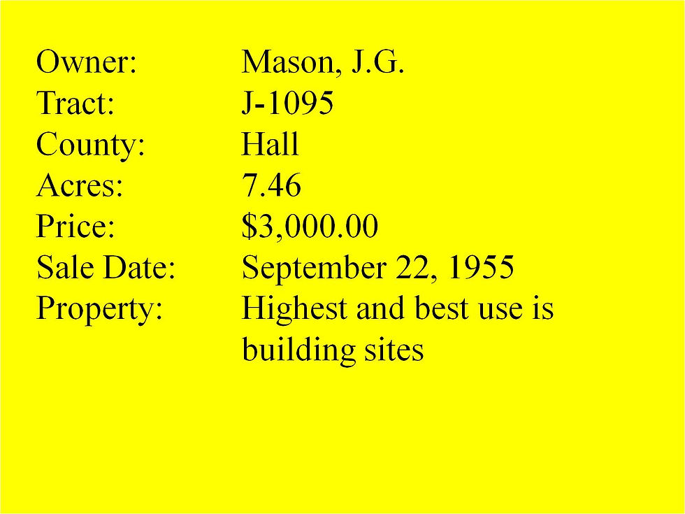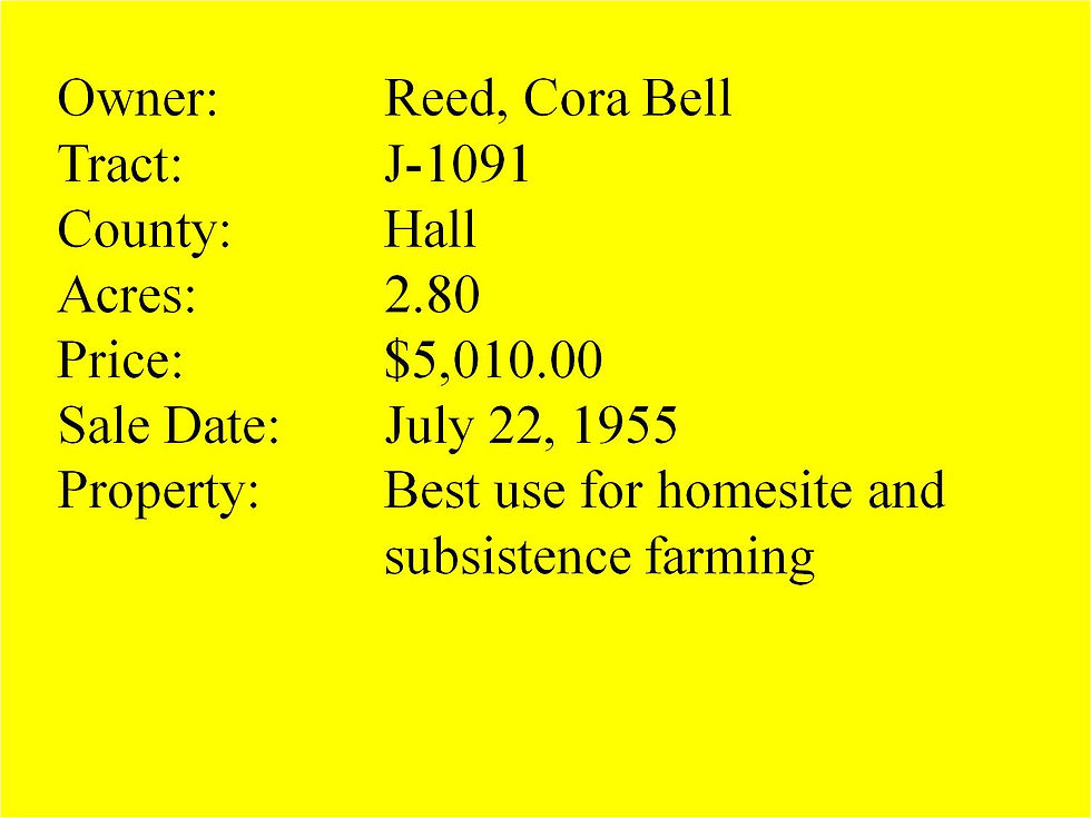 An abridged collection of data is provided for each tract of land. Data sheets detailing the owner’s name, tract number of the property, the county it was located in, the acreage purchased, the price paid by the government for the property and a description of what the property was used for is provided for each tract. Government promissory deed records are provided for most of the tracts. Some contain photographs of improvements made on the property to help determine the fair market value of property.