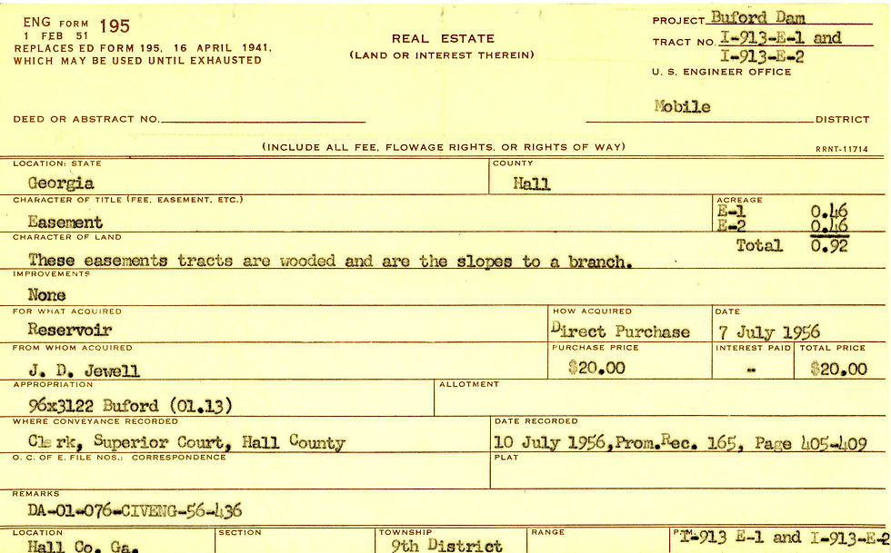 Welcome to Lake Lanier’s Reservoir Land & Property Archival Program. This tool will allow you to locate information on land and other property the government purchased for Lake Sidney Lanier. You can search for property information by the owner’s full name, the owner’s last name, the tract number, and county the property was located in.