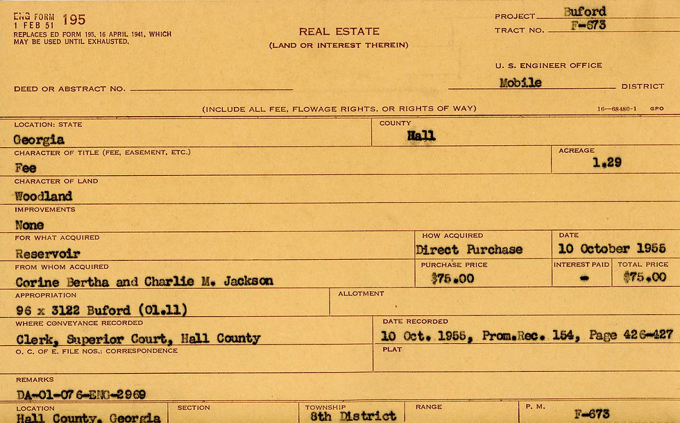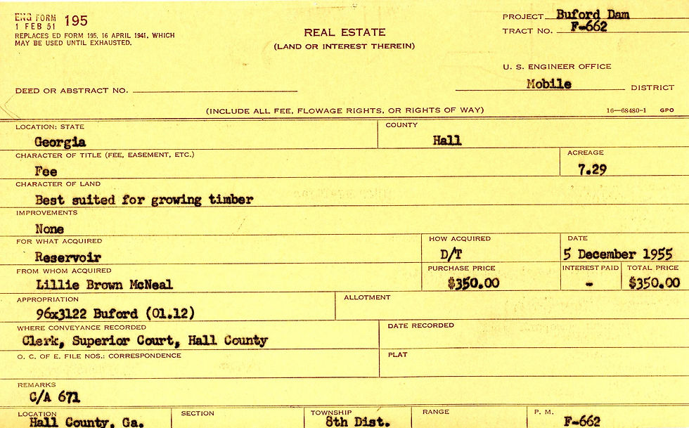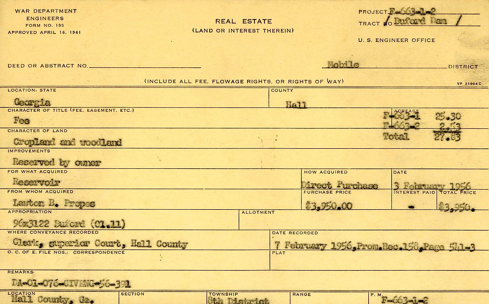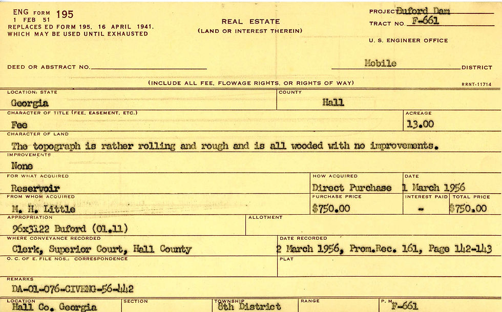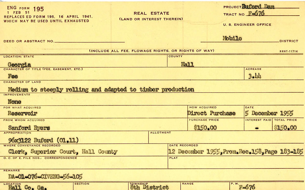 Welcome to Lake Lanier’s Reservoir Land & Property Archival Program. This tool will allow you to locate information on land and other property the government purchased for Lake Sidney Lanier. You can search for property information by the owner’s full name, the owner’s last name, the tract number, and county the property was located in.