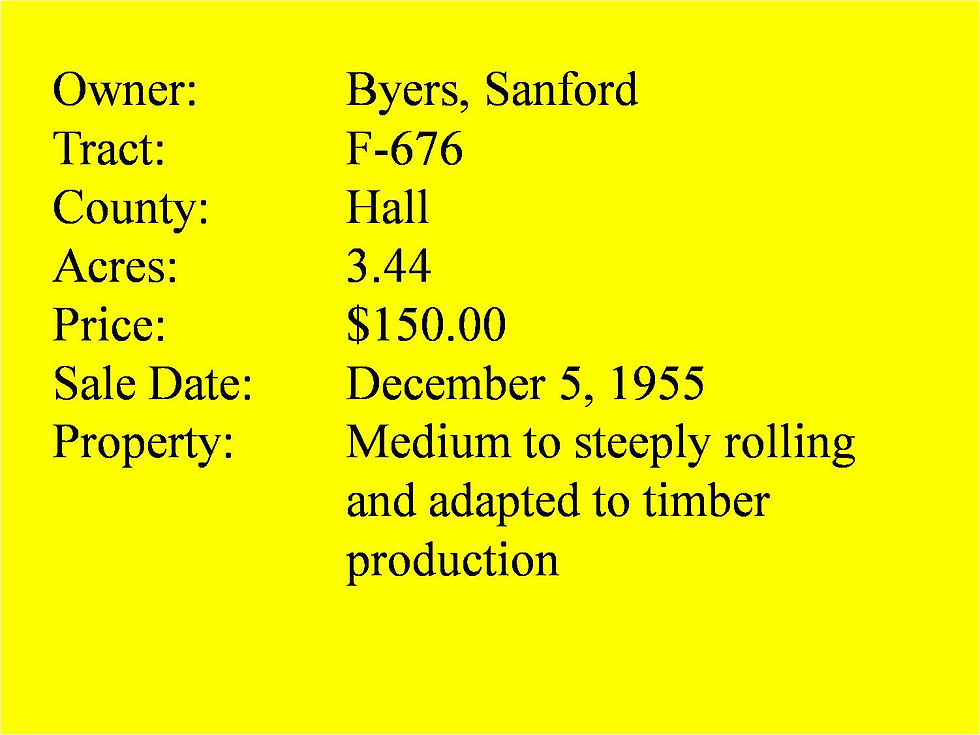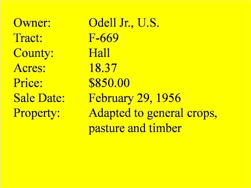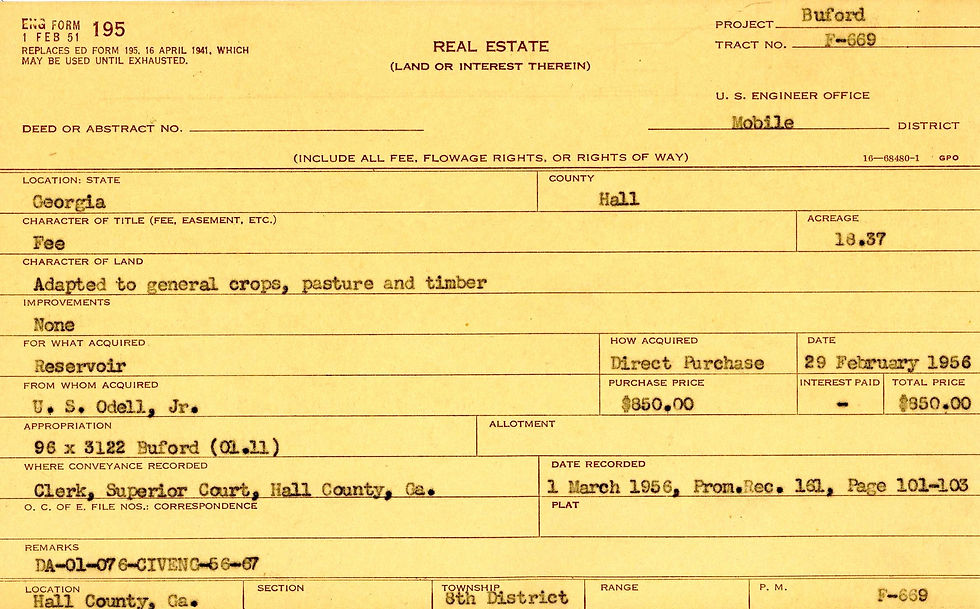 An abridged collection of data is provided for each tract of land. Data sheets detailing the owner’s name, tract number of the property, the county it was located in, the acreage purchased, the price paid by the government for the property and a description of what the property was used for is provided for each tract. Government promissory deed records are provided for most of the tracts. Some contain photographs of improvements made on the property to help determine the fair market value of property.