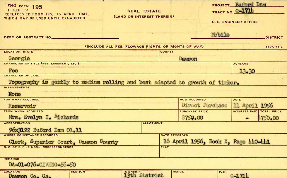 Welcome to Lake Lanier’s Reservoir Land & Property Archival Program. This tool will allow you to locate information on land and other property the government purchased for Lake Sidney Lanier. You can search for property information by the owner’s full name, the owner’s last name, the tract number, and county the property was located in.