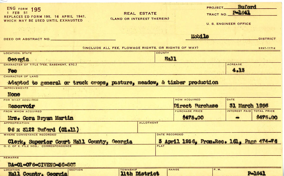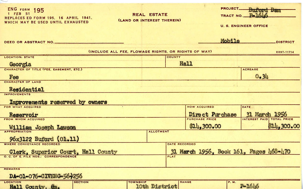 Welcome to Lake Lanier’s Reservoir Land & Property Archival Program. This tool will allow you to locate information on land and other property the government purchased for Lake Sidney Lanier. You can search for property information by the owner’s full name, the owner’s last name, the tract number, and county the property was located in.